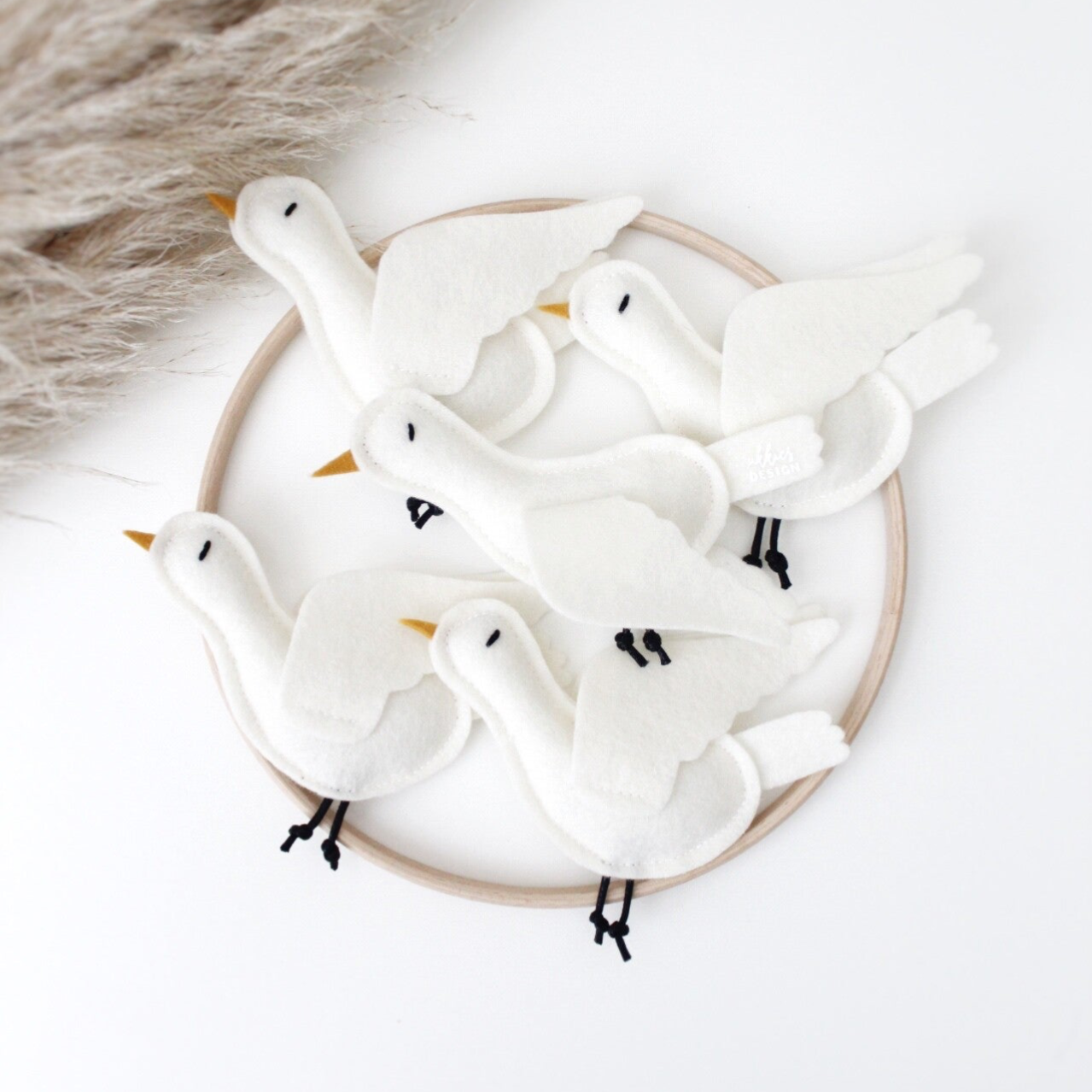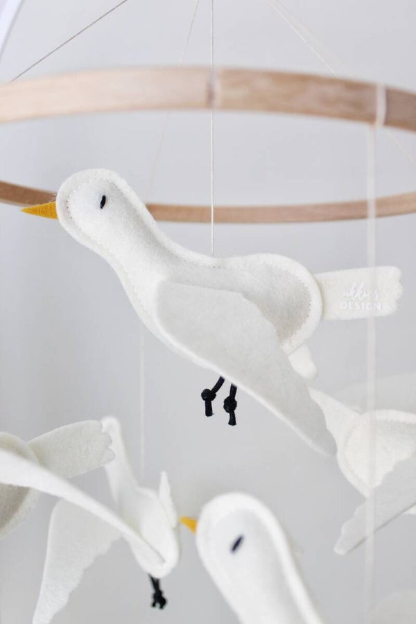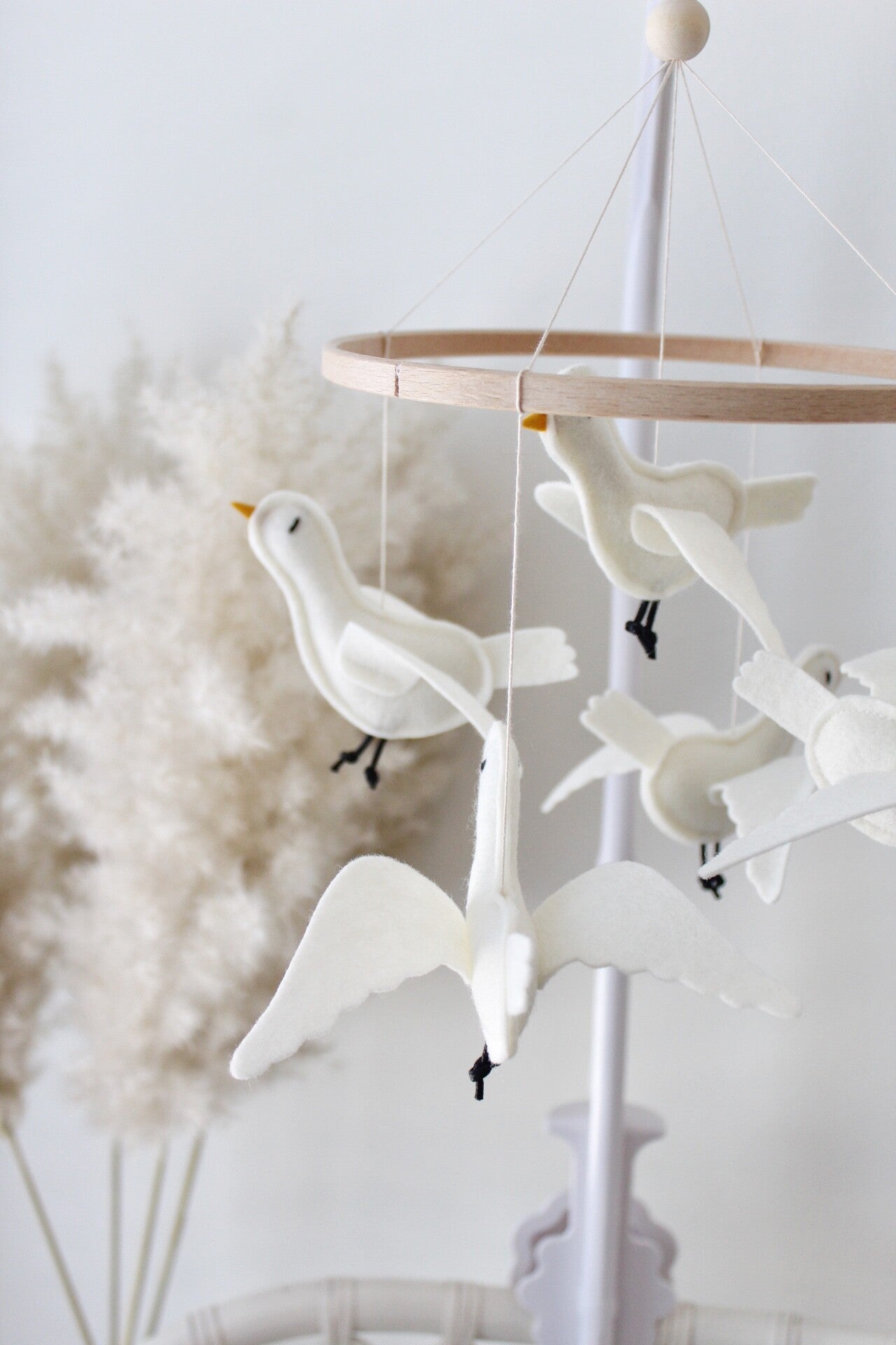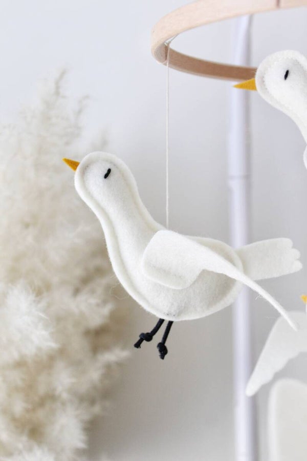 Opzoek naar een rustgevende decoartie in de babykamer of boven de box? Deze mobiel met zwerm vogels in natuurlijke tinten, is een echte trendy favoriet!