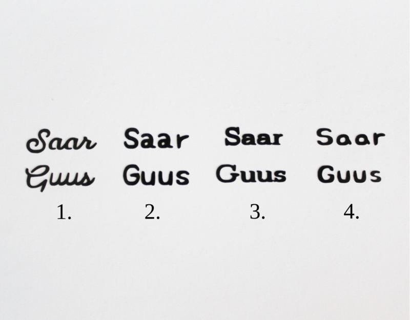 Let op.. naam is max 7 letters. Bij een langere naam, graag even vooraf contact opnemen
